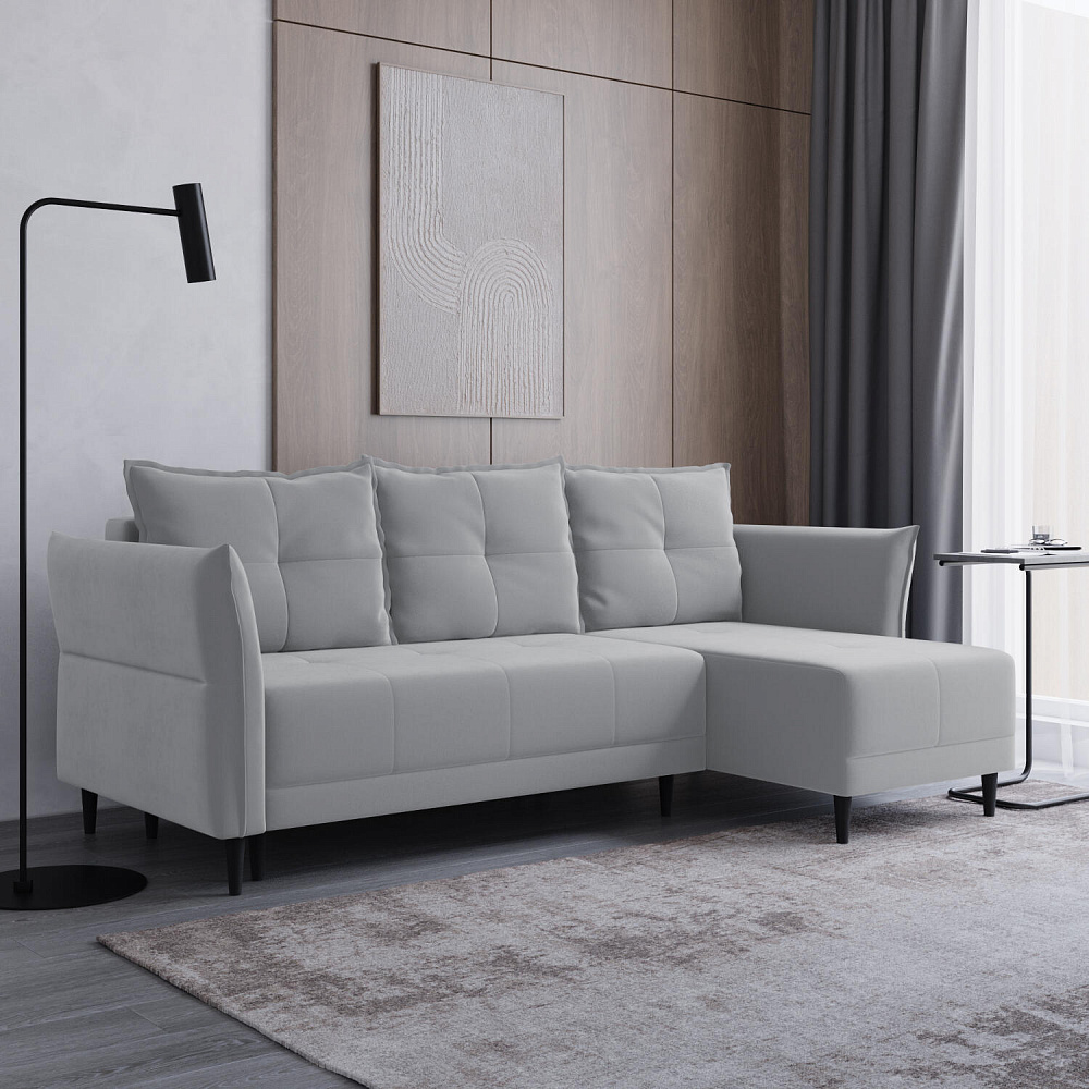 Универсальный угол. Диван подстроится под условия помещения — оттоманка устанавливается как слева, так и справа.