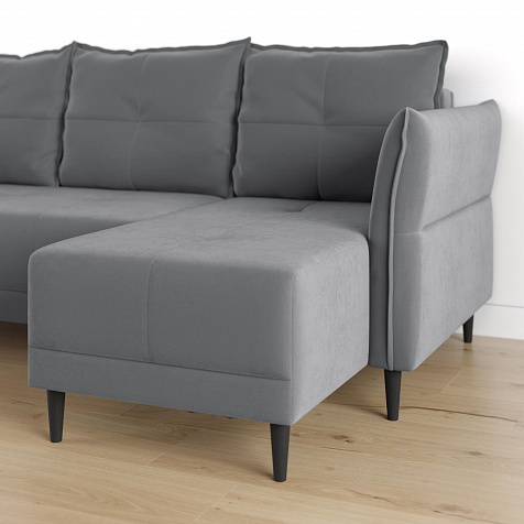 Универсальный угол. Диван подстроится под условия помещения — оттоманка устанавливается как слева, так и справа.