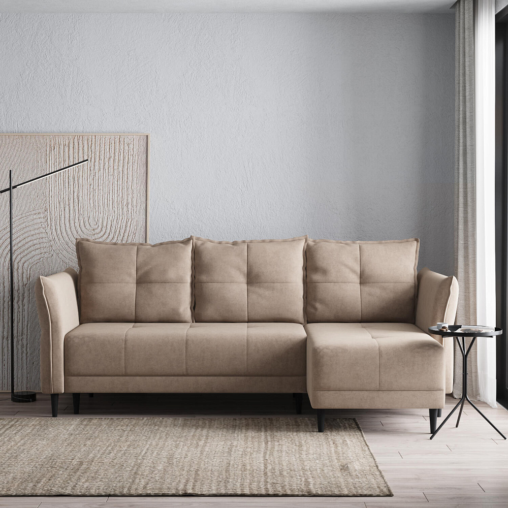 Универсальный угол. Диван подстроится под условия помещения — оттоманка устанавливается как слева, так и справа.