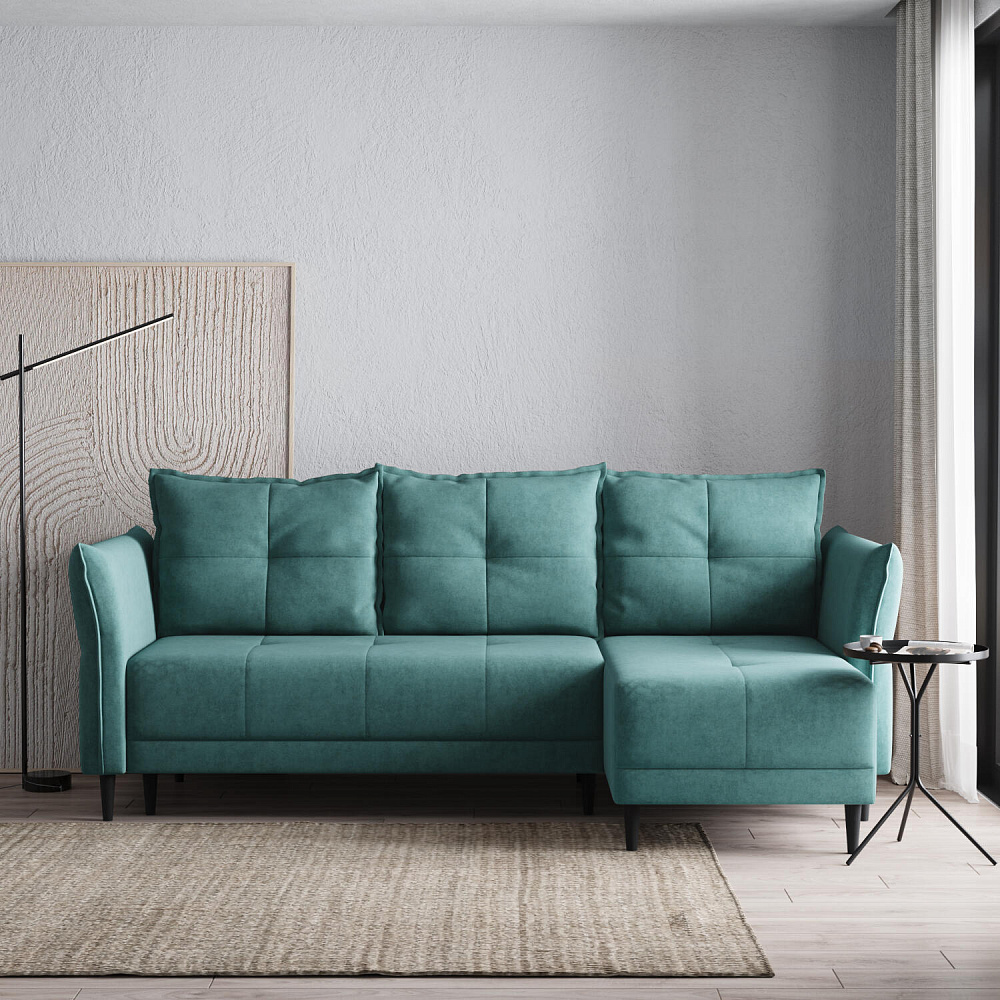 Универсальный угол. Диван подстроится под условия помещения — оттоманка устанавливается как слева, так и справа.