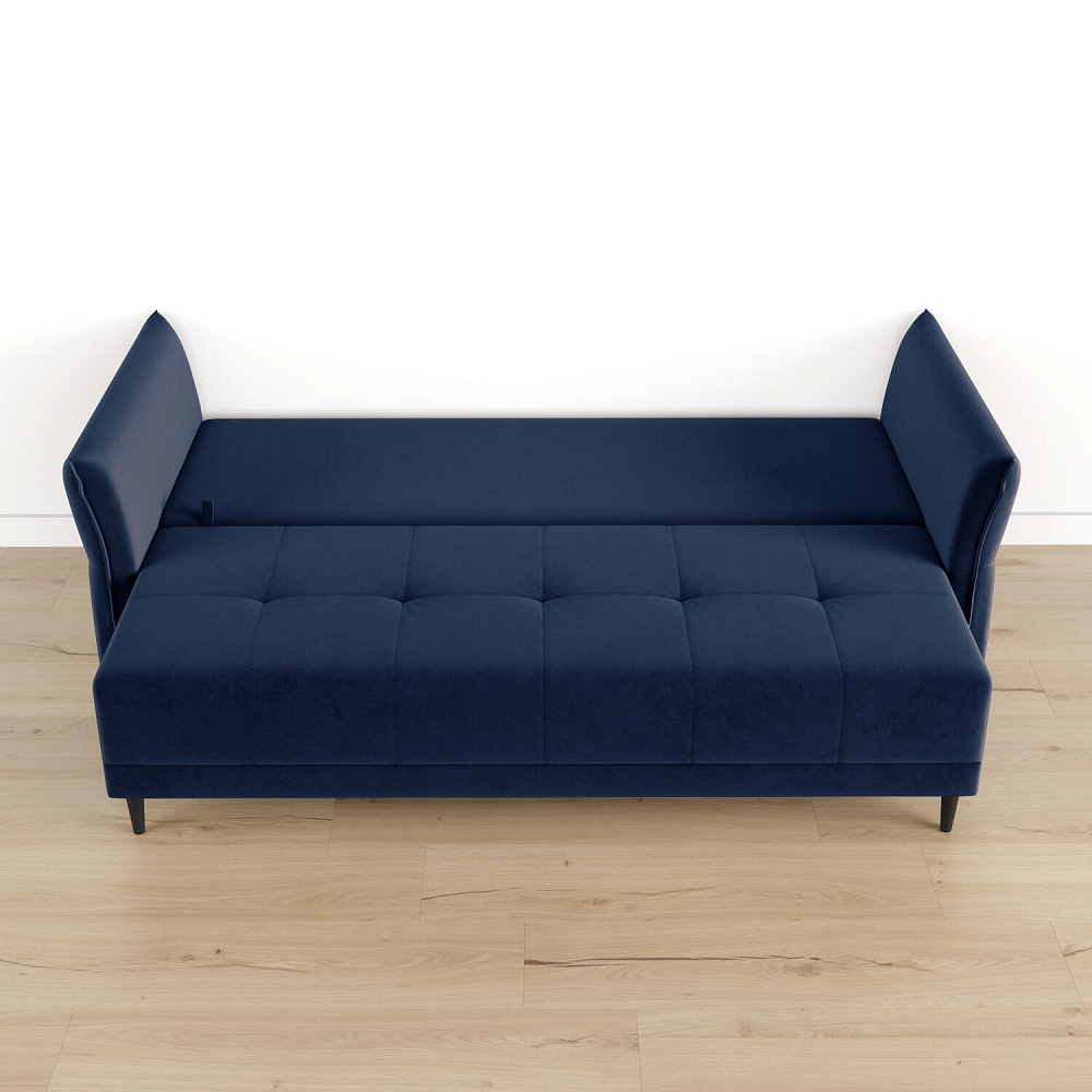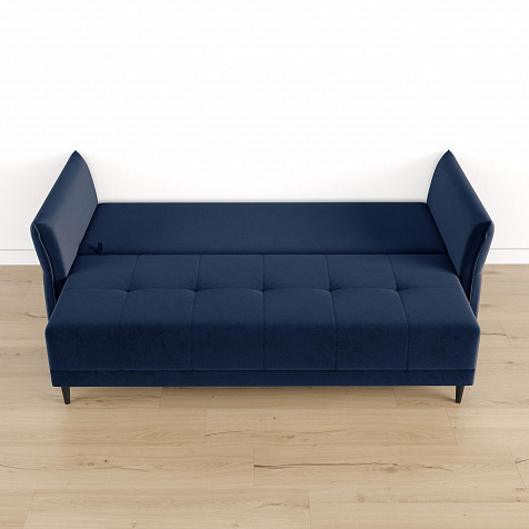 Механизм трансформации «Еврокнижка». Диван легко раскладывается — нужно выдвинуть вперед сиденье и опустить спинку. Удобен механизм ещё тем, что двигается только передняя часть, поэтому отодвигать диван от стены не требуется.