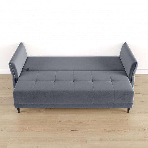 Механизм трансформации «Еврокнижка». Диван легко раскладывается — нужно выдвинуть вперед сиденье и опустить спинку. Удобен механизм ещё тем, что двигается только передняя часть, поэтому отодвигать диван от стены не требуется.
