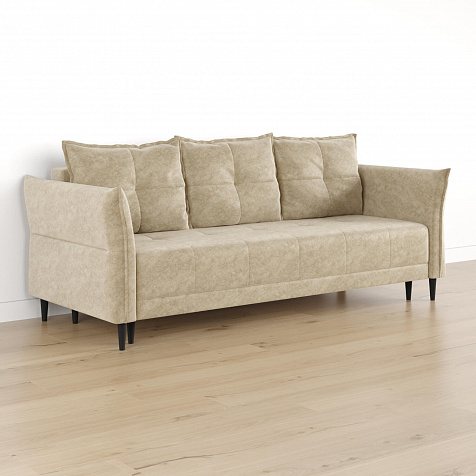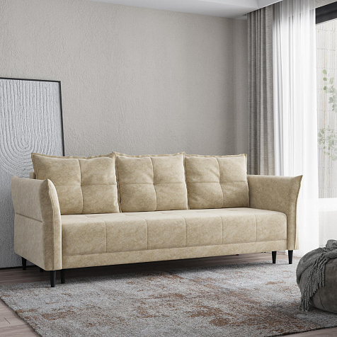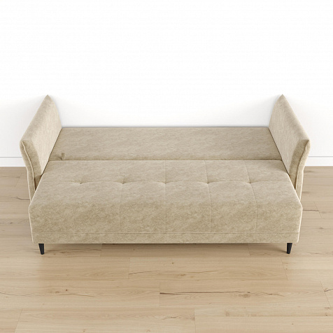 Механизм трансформации «Еврокнижка». Диван легко раскладывается — нужно выдвинуть вперед сиденье и опустить спинку. Удобен механизм ещё тем, что двигается только передняя часть, поэтому отодвигать диван от стены не требуется.