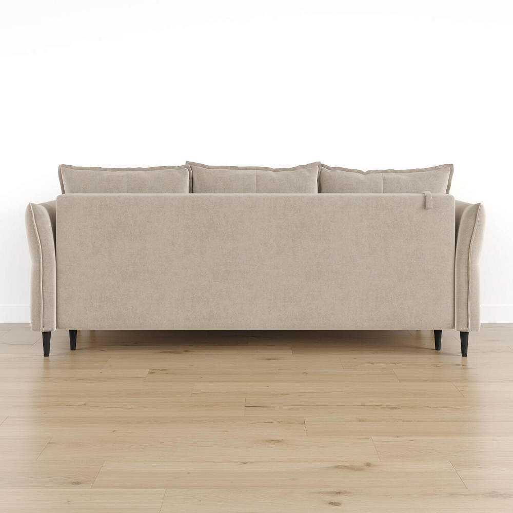 Оставляйте зазор между стеной и диваном не менее 8 см. Не рекомендуем устанавливать диван вплотную к стене из-за отсутствия задней планки.