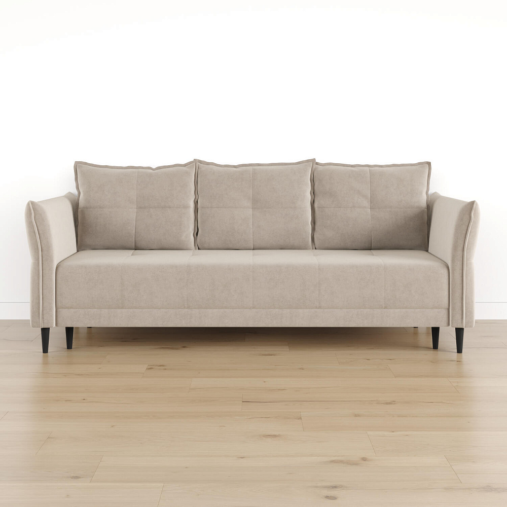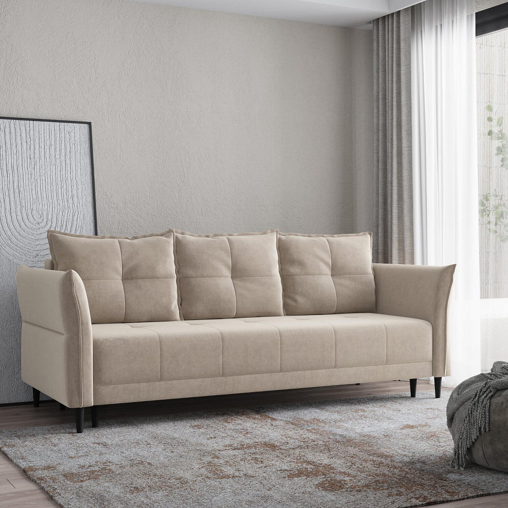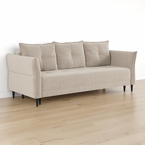 Механизм трансформации «Еврокнижка». Диван легко раскладывается — нужно выдвинуть вперед сиденье и опустить спинку. Удобен механизм ещё тем, что двигается только передняя часть, поэтому отодвигать диван от стены не требуется.