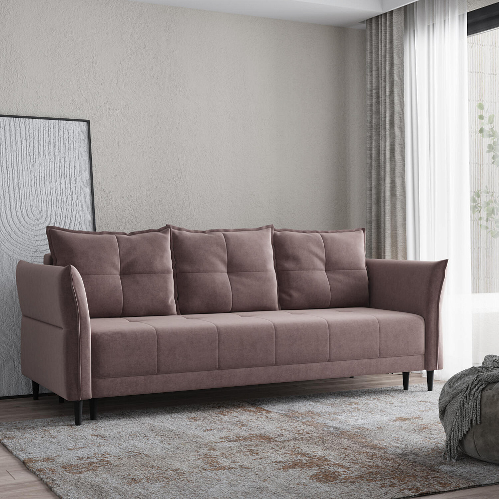 Механизм трансформации «Еврокнижка». Диван легко раскладывается — нужно выдвинуть вперед сиденье и опустить спинку. Удобен механизм ещё тем, что двигается только передняя часть, поэтому отодвигать диван от стены не требуется.