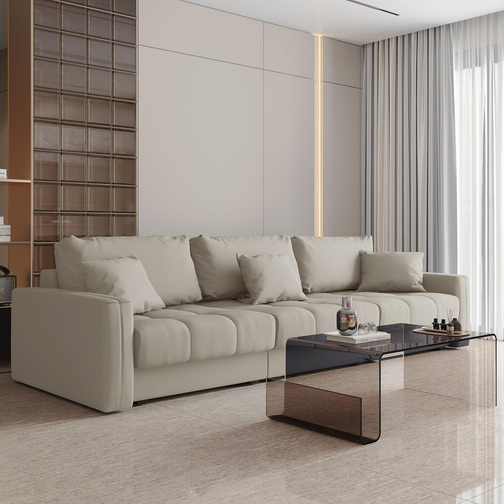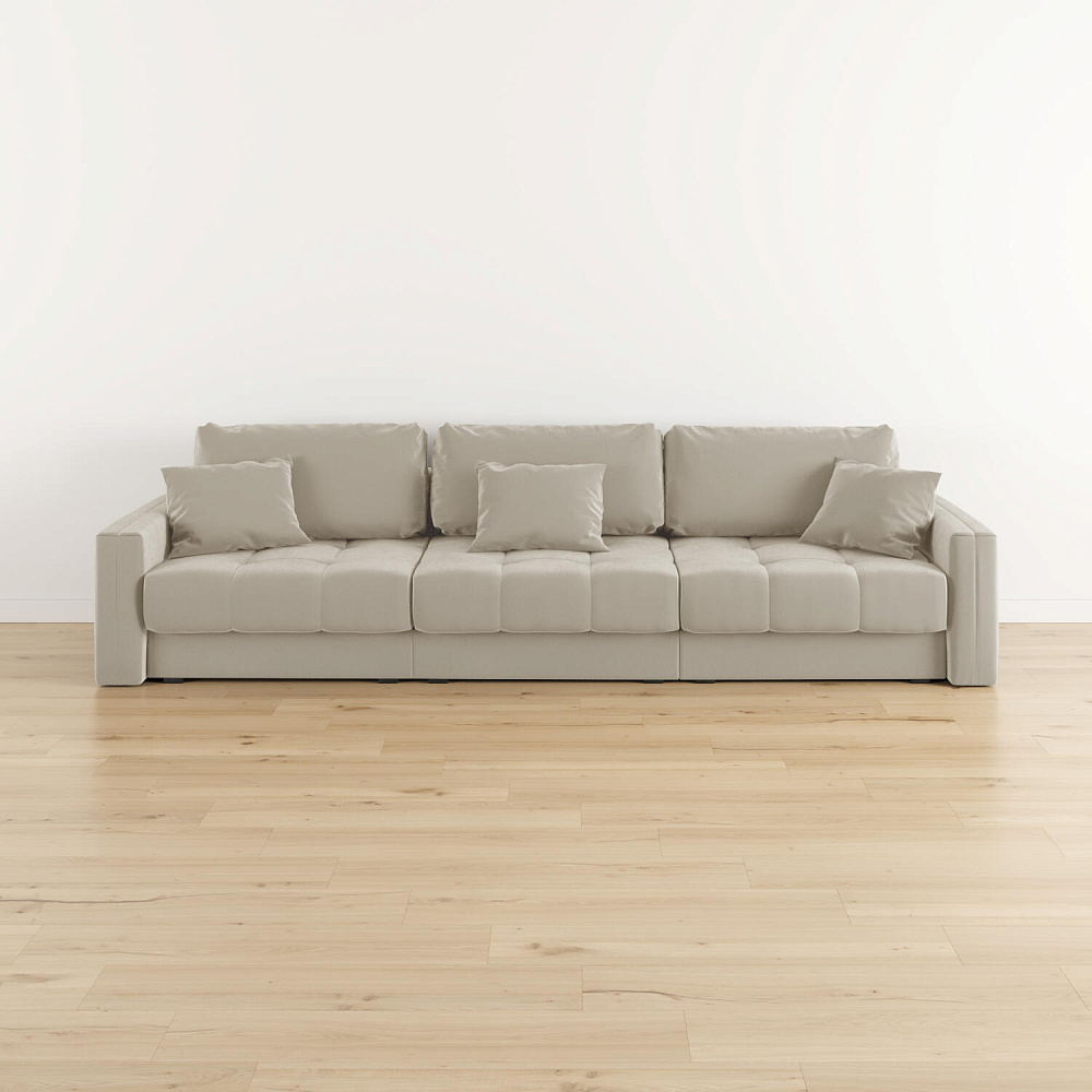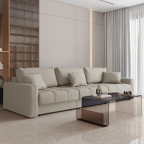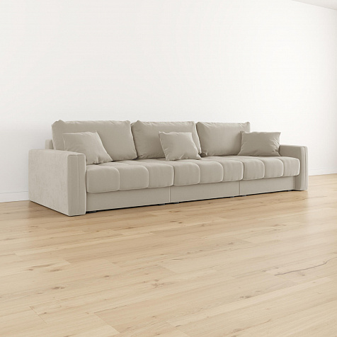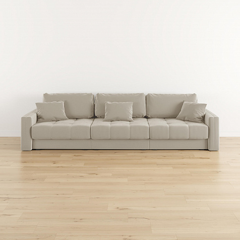 Диван «Дензел» — лучший вариант для ценителей комфорта в сочетании со стильным дизайном. Диван обладает глубокой посадкой, а приспинные и декоративные подушки позволят создать самое удобное место для отдыха. Спинка дивана выполнена в той же обивке, что и основная часть, что даёт возможность использовать диван для зонирования комнаты.