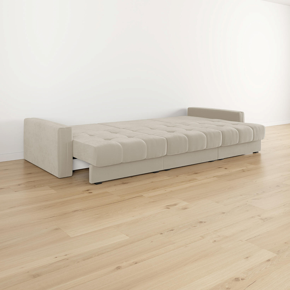 - Размер спального места — 300 х 167 см. Диван легко трансформируется в полноценное двуспальное место.