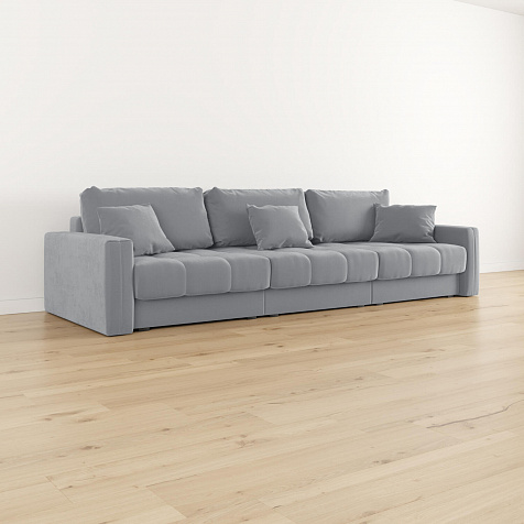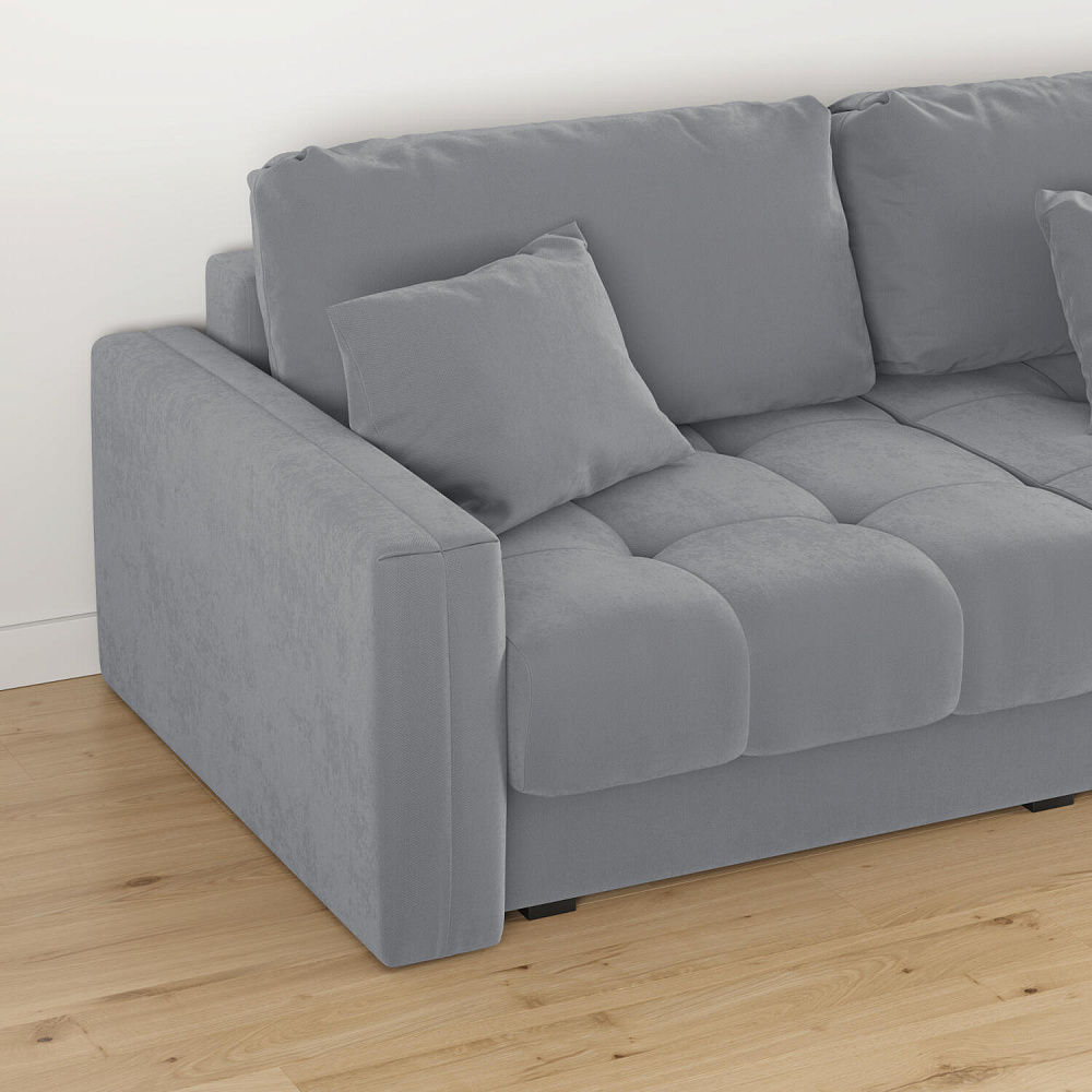 Диван «Дензел» — лучший вариант для ценителей комфорта в сочетании со стильным дизайном. Диван обладает глубокой посадкой, а приспинные и декоративные подушки позволят создать самое удобное место для отдыха. Спинка дивана выполнена в той же обивке, что и основная часть, что даёт возможность использовать диван для зонирования комнаты.