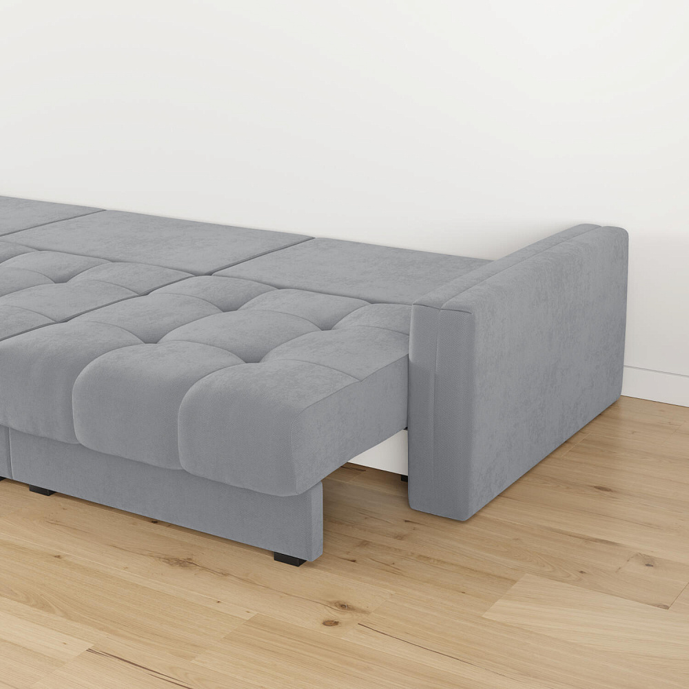 - Размер спального места — 300 х 167 см. Диван легко трансформируется в полноценное двуспальное место.