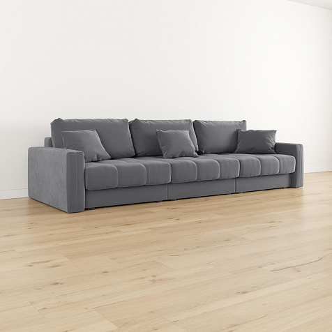 Диван «Дензел» — лучший вариант для ценителей комфорта в сочетании со стильным дизайном. Диван обладает глубокой посадкой, а приспинные и декоративные подушки позволят создать самое удобное место для отдыха. Спинка дивана выполнена в той же обивке, что и основная часть, что даёт возможность использовать диван для зонирования комнаты.