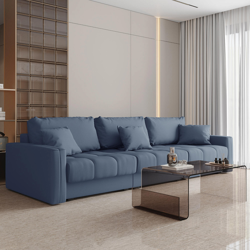 Диван «Дензел» — лучший вариант для ценителей комфорта в сочетании со стильным дизайном. Диван обладает глубокой посадкой, а приспинные и декоративные подушки позволят создать самое удобное место для отдыха. Спинка дивана выполнена в той же обивке, что и основная часть, что даёт возможность использовать диван для зонирования комнаты.