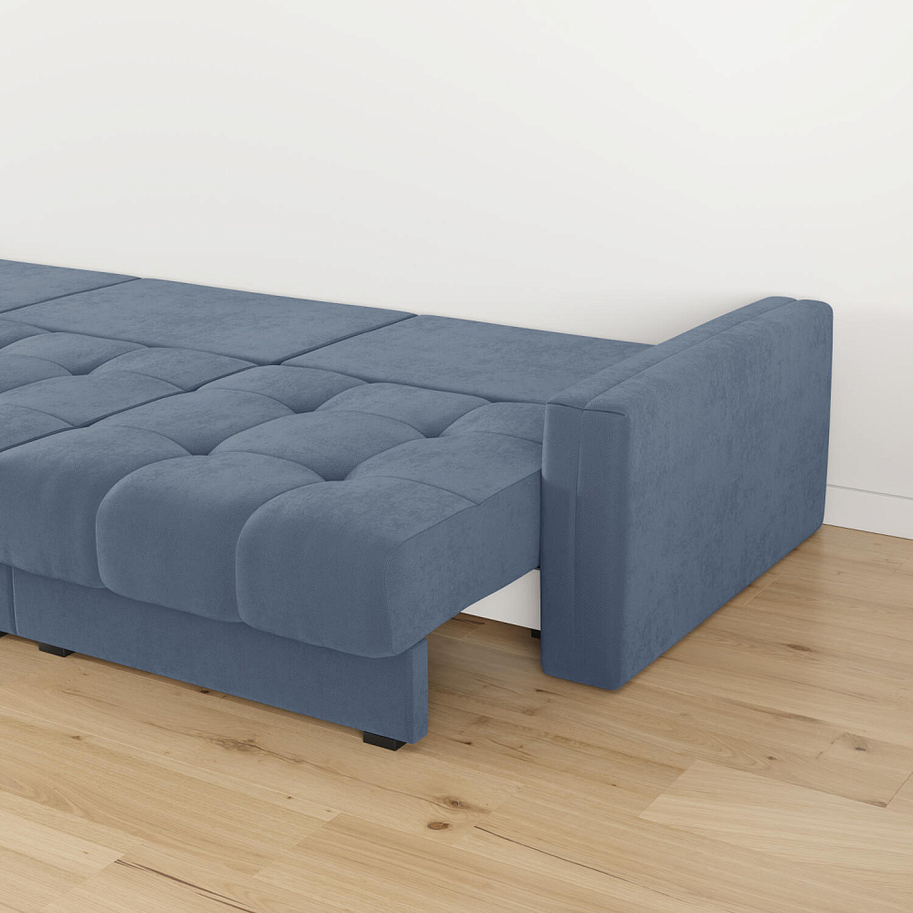 - Размер спального места — 300 х 167 см. Диван легко трансформируется в полноценное двуспальное место.