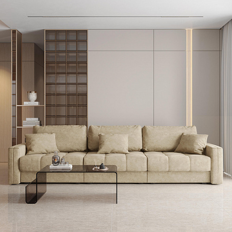 Диван «Дензел» — лучший вариант для ценителей комфорта в сочетании со стильным дизайном. Диван обладает глубокой посадкой, а приспинные и декоративные подушки позволят создать самое удобное место для отдыха. Спинка дивана выполнена в той же обивке, что и основная часть, что даёт возможность использовать диван для зонирования комнаты.