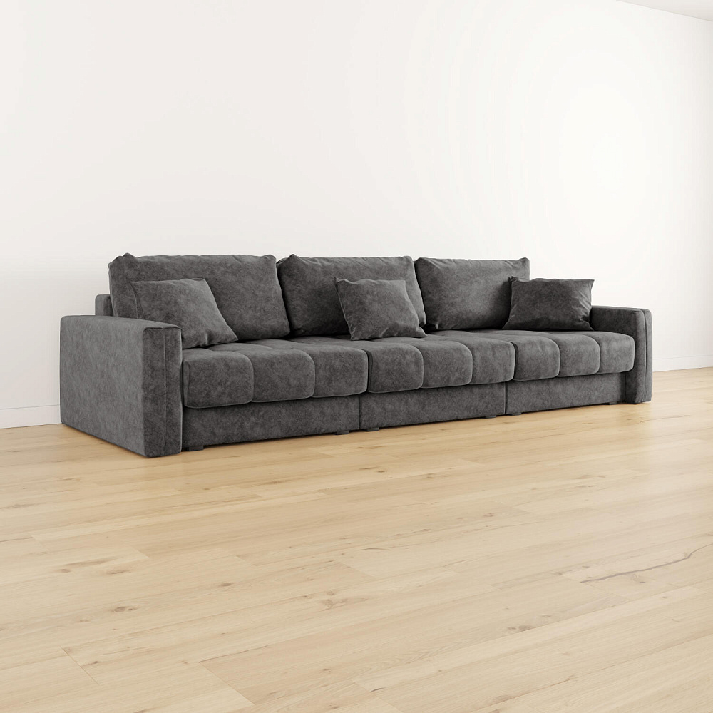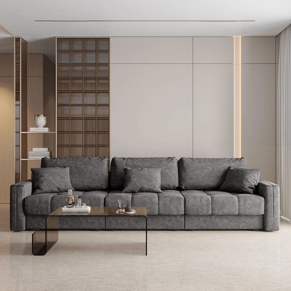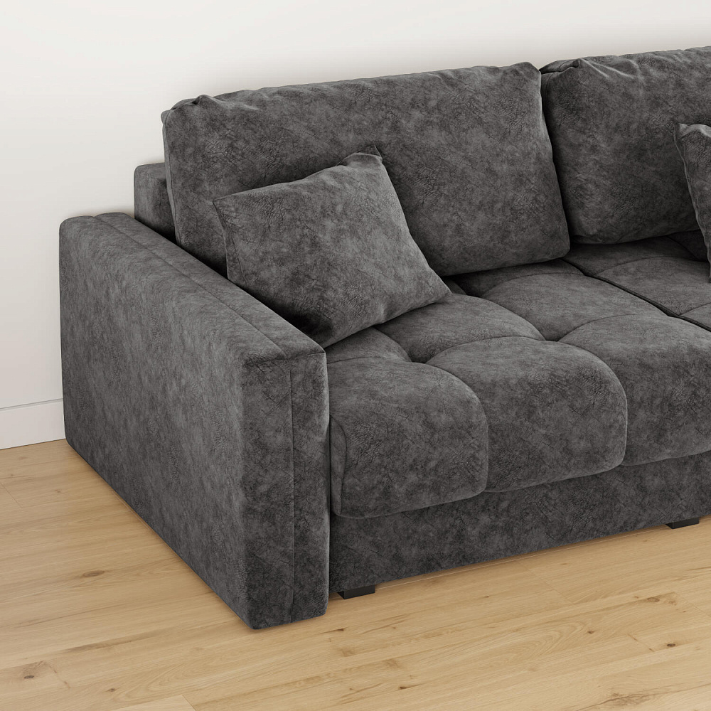 Диван «Дензел» — лучший вариант для ценителей комфорта в сочетании со стильным дизайном. Диван обладает глубокой посадкой, а приспинные и декоративные подушки позволят создать самое удобное место для отдыха. Спинка дивана выполнена в той же обивке, что и основная часть, что даёт возможность использовать диван для зонирования комнаты.