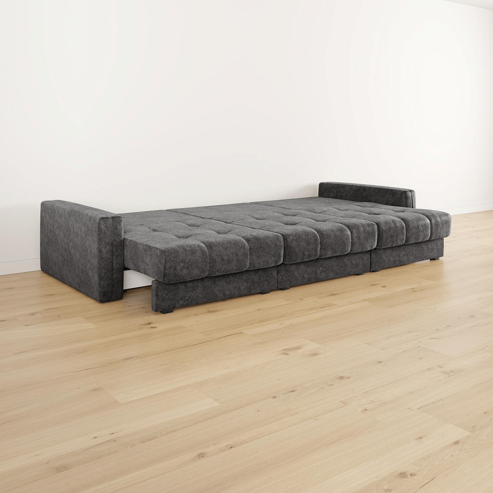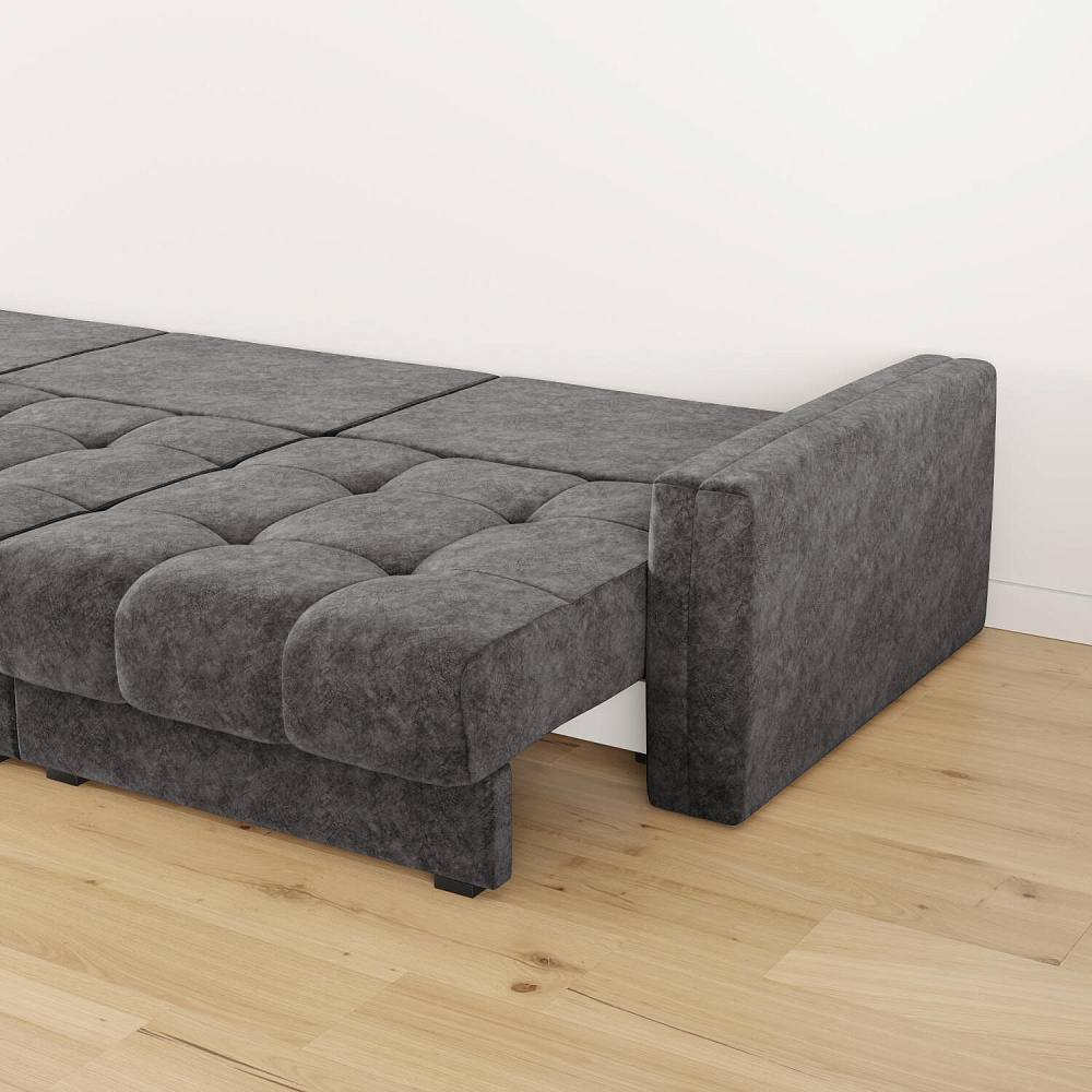 - Размер спального места — 300 х 167 см. Диван легко трансформируется в полноценное двуспальное место.
