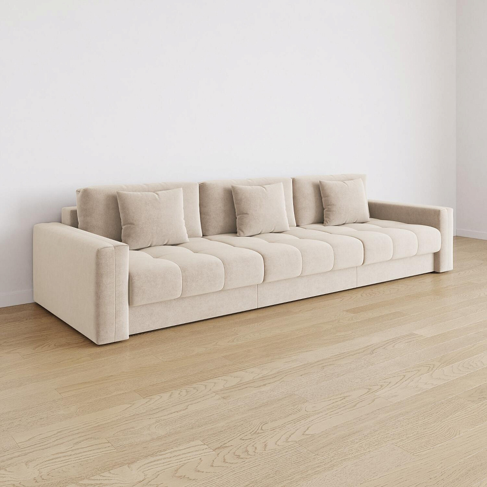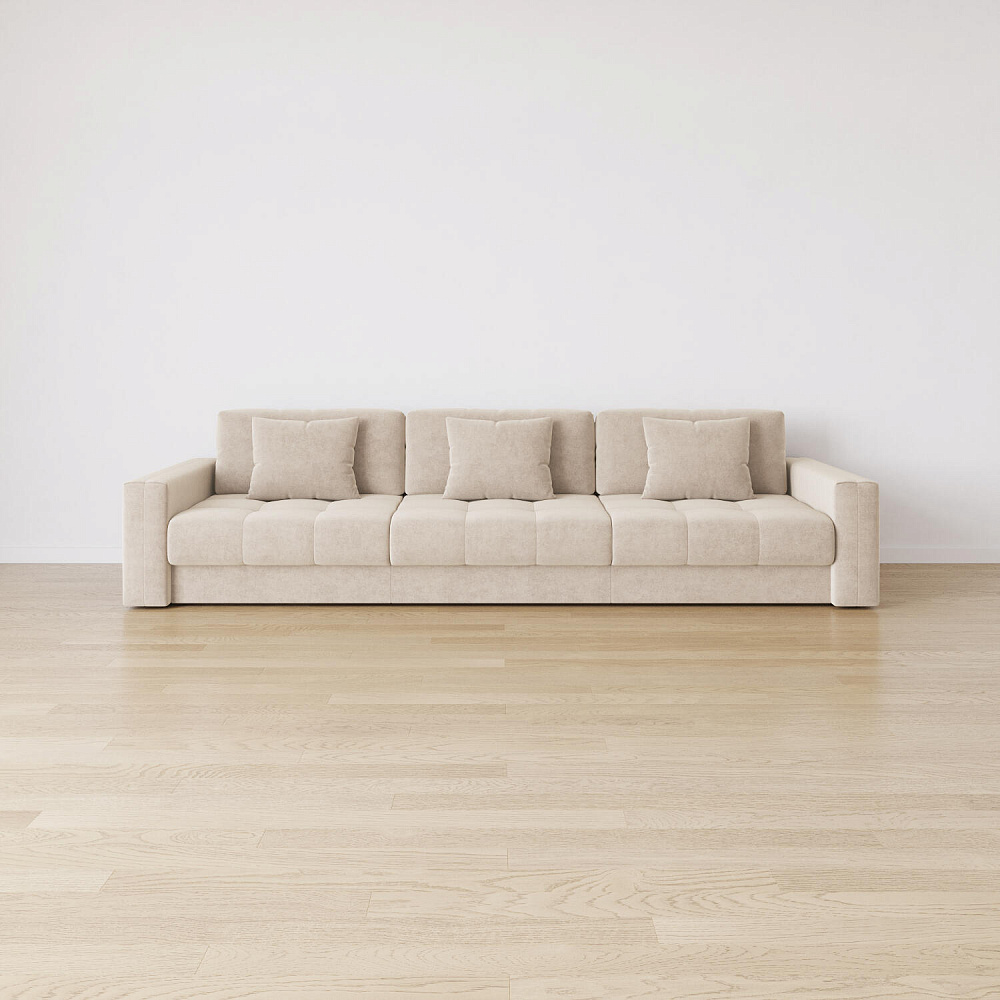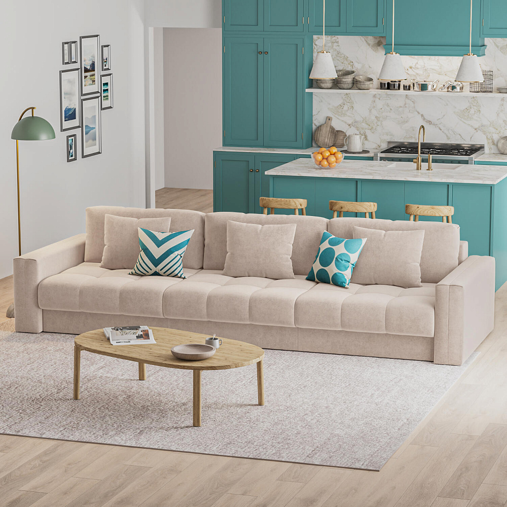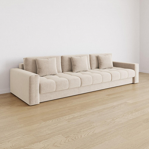 Диван «Дензел» — лучший вариант для ценителей комфорта в сочетании со стильным дизайном. Диван обладает глубокой посадкой, а приспинные и декоративные подушки позволят создать самое удобное место для отдыха. Спинка дивана выполнена в той же обивке, что и основная часть, что даёт возможность использовать диван для зонирования комнаты.