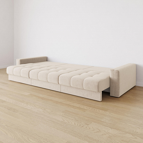 - Размер спального места — 300 х 167 см. Диван легко трансформируется в полноценное двуспальное место.