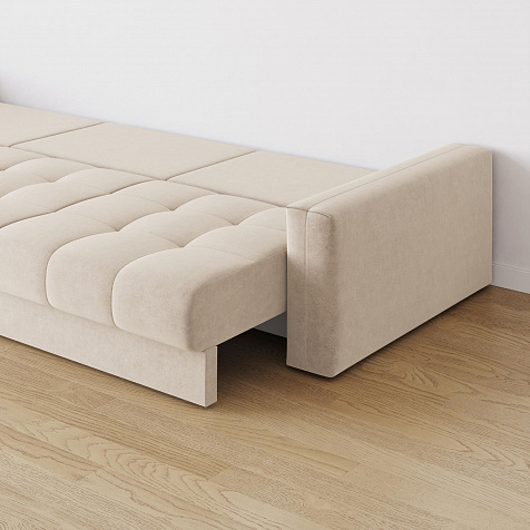 - Бережный механизм трансформации «Тик-Так» секционный. Части дивана раскладываются независимо друг от друга. Напольное покрытие останется целым — механизм выталкивает сиденье вверх, которое словно шагает вперёд, не касаясь пола. Трансформация лёгкая — справится даже ребёнок.