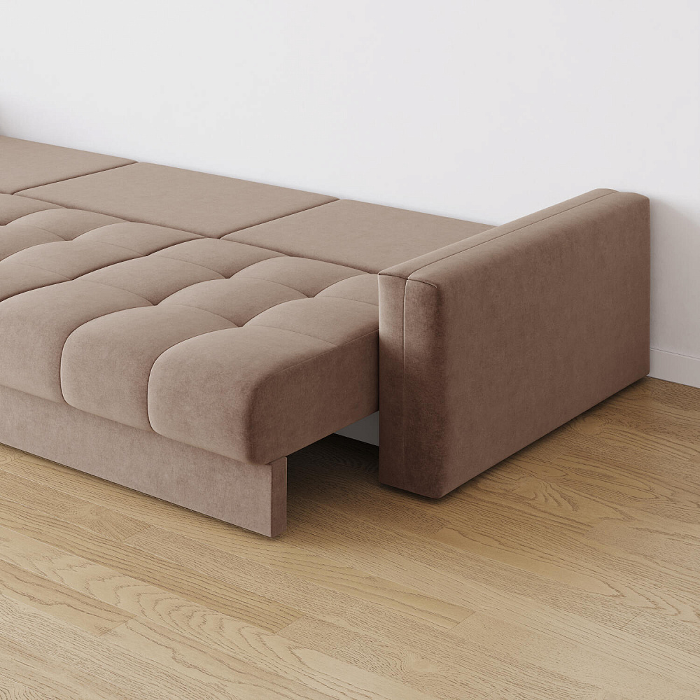 - Бережный механизм трансформации «Тик-Так» секционный. Части дивана раскладываются независимо друг от друга. Напольное покрытие останется целым — механизм выталкивает сиденье вверх, которое словно шагает вперёд, не касаясь пола. Трансформация лёгкая — справится даже ребёнок.
