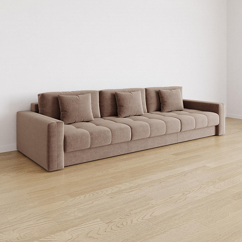 Диван «Дензел» — лучший вариант для ценителей комфорта в сочетании со стильным дизайном. Диван обладает глубокой посадкой, а приспинные и декоративные подушки позволят создать самое удобное место для отдыха. Спинка дивана выполнена в той же обивке, что и основная часть, что даёт возможность использовать диван для зонирования комнаты.