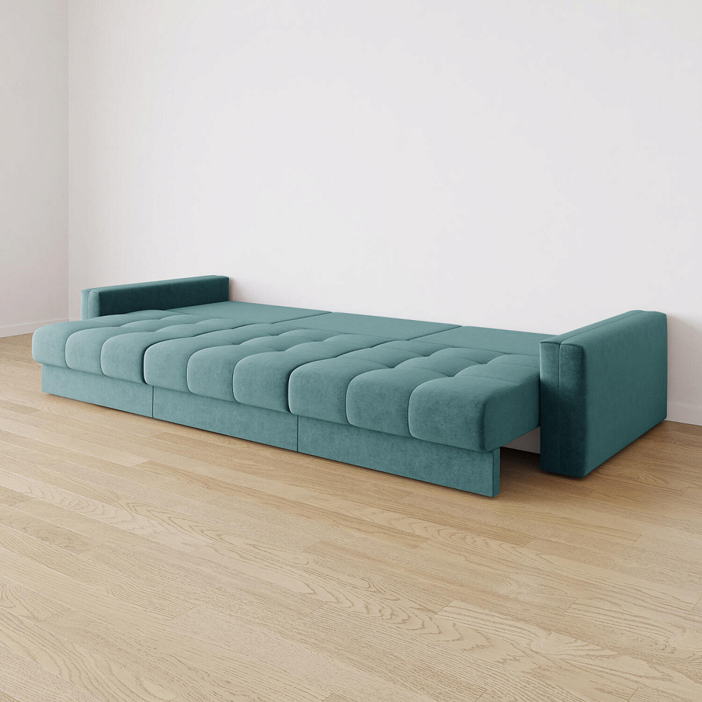 - Размер спального места — 300 х 167 см. Диван легко трансформируется в полноценное двуспальное место.