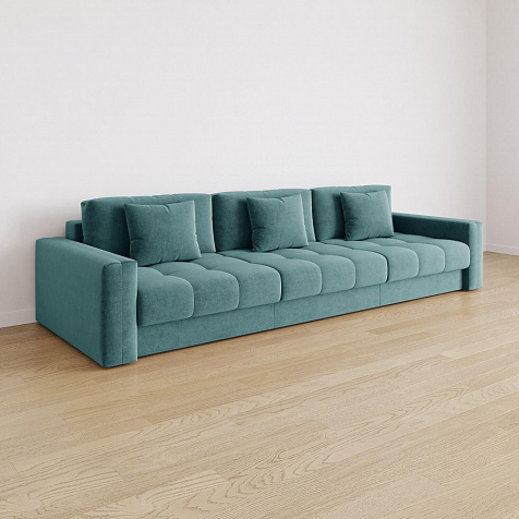 Диван «Дензел» — лучший вариант для ценителей комфорта в сочетании со стильным дизайном. Диван обладает глубокой посадкой, а приспинные и декоративные подушки позволят создать самое удобное место для отдыха. Спинка дивана выполнена в той же обивке, что и основная часть, что даёт возможность использовать диван для зонирования комнаты.