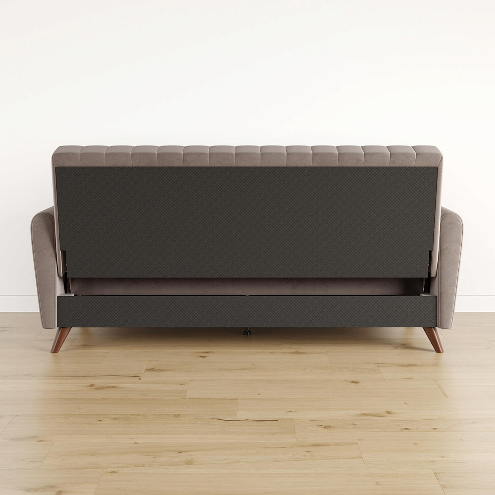 - Короб для белья. В диване предусмотрен просторный короб с двумя отделениями для хранения постельных принадлежностей и других вещей.