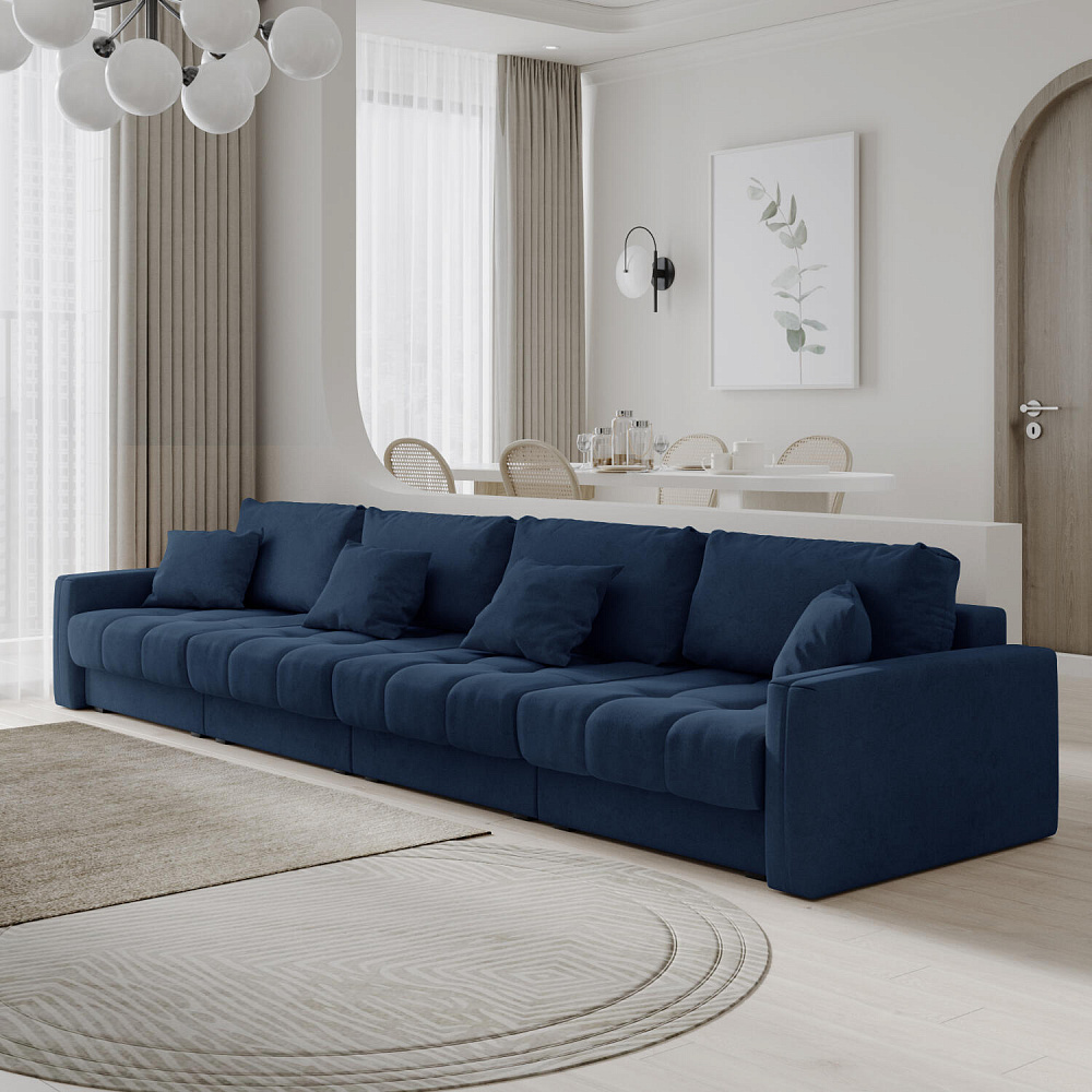 Диван «Дензел» — лучший вариант для ценителей комфорта в сочетании со стильным дизайном. Диван обладает глубокой посадкой, а приспинные и декоративные подушки позволят создать самое удобное место для отдыха. Спинка дивана выполнена в той же обивке, что и основная часть, что даёт возможность использовать диван для зонирования комнаты.