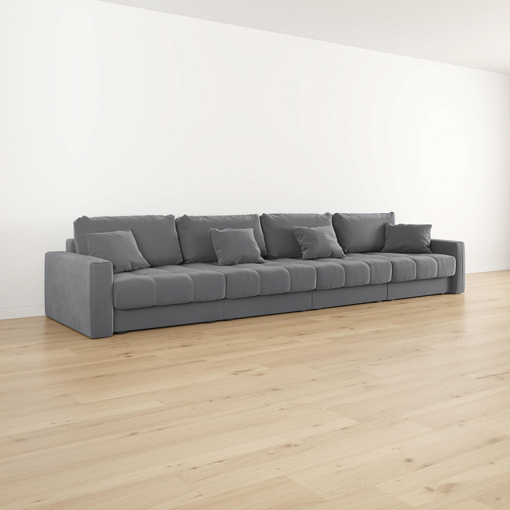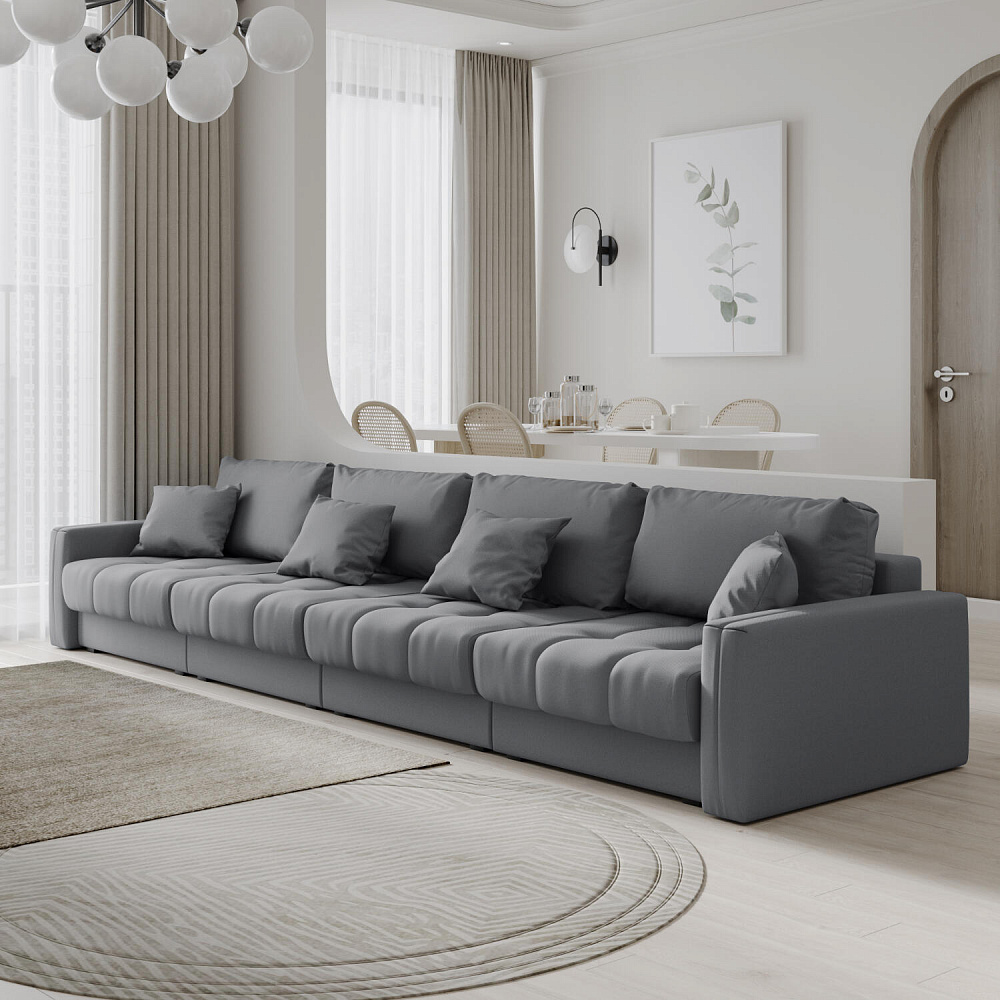 Диван «Дензел» — лучший вариант для ценителей комфорта в сочетании со стильным дизайном. Диван обладает глубокой посадкой, а приспинные и декоративные подушки позволят создать самое удобное место для отдыха. Спинка дивана выполнена в той же обивке, что и основная часть, что даёт возможность использовать диван для зонирования комнаты.