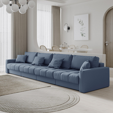 Диван «Дензел» — лучший вариант для ценителей комфорта в сочетании со стильным дизайном. Диван обладает глубокой посадкой, а приспинные и декоративные подушки позволят создать самое удобное место для отдыха. Спинка дивана выполнена в той же обивке, что и основная часть, что даёт возможность использовать диван для зонирования комнаты.