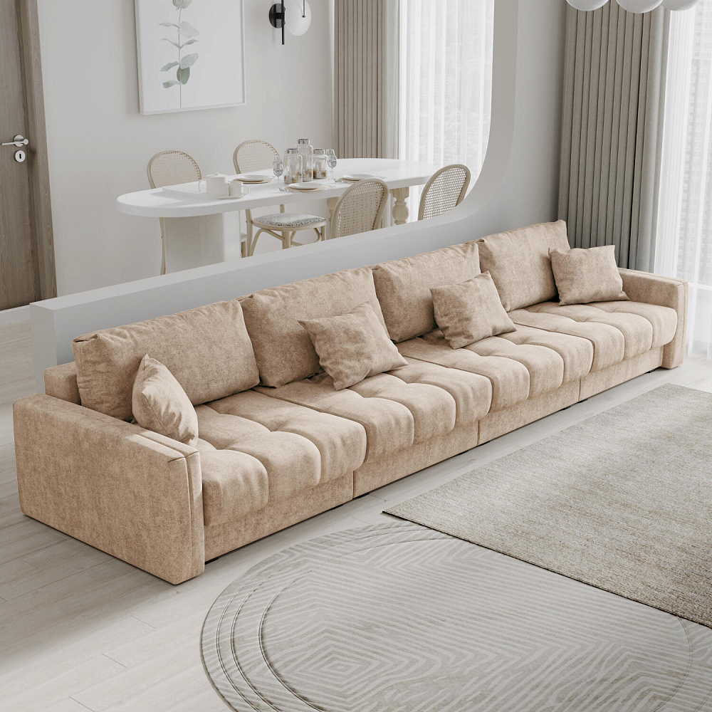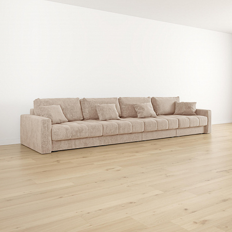 Диван «Дензел» — лучший вариант для ценителей комфорта в сочетании со стильным дизайном. Диван обладает глубокой посадкой, а приспинные и декоративные подушки позволят создать самое удобное место для отдыха. Спинка дивана выполнена в той же обивке, что и основная часть, что даёт возможность использовать диван для зонирования комнаты.