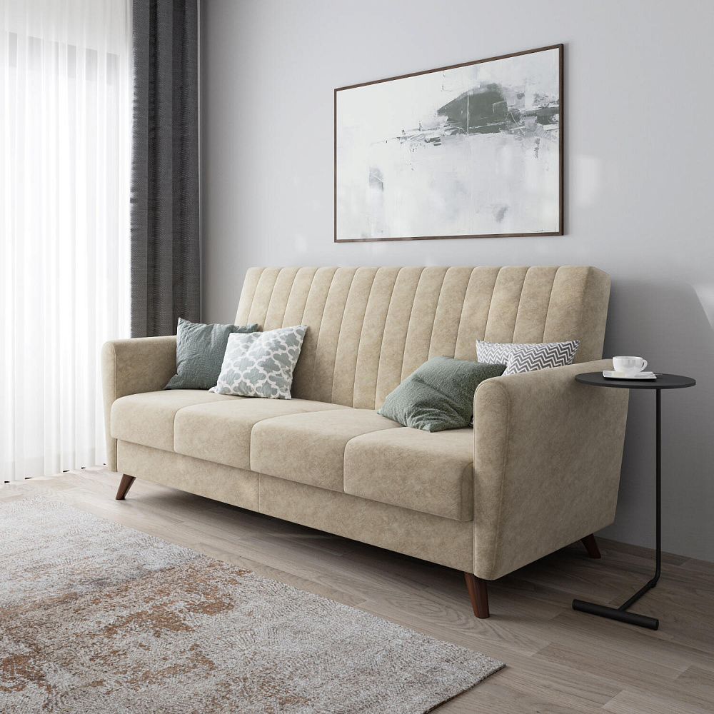 Диван «Эссен» — воплощение скандинавского стиля с выразительными акцентами в виде высоких опор. Эстетичный минимализм в дизайне позволяет использовать модель в различных интерьерных решениях. Декоративная строчка на обивке подчеркивает неброскую элегантность, а высокие ножки добавляют визуальной лёгкости. Прочная и приятная на ощупь ткань обивки подарит истинное эстетическое и тактильное наслаждение.