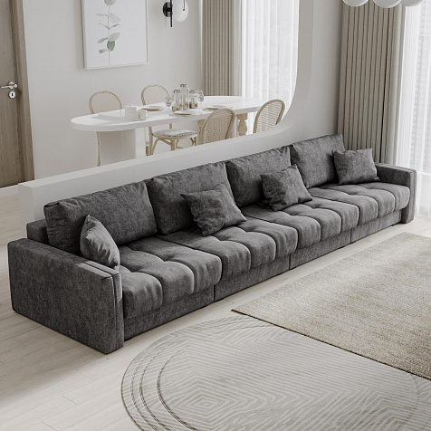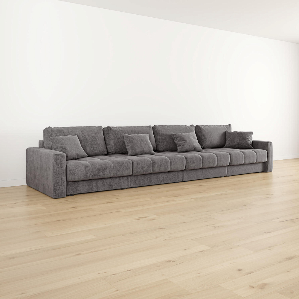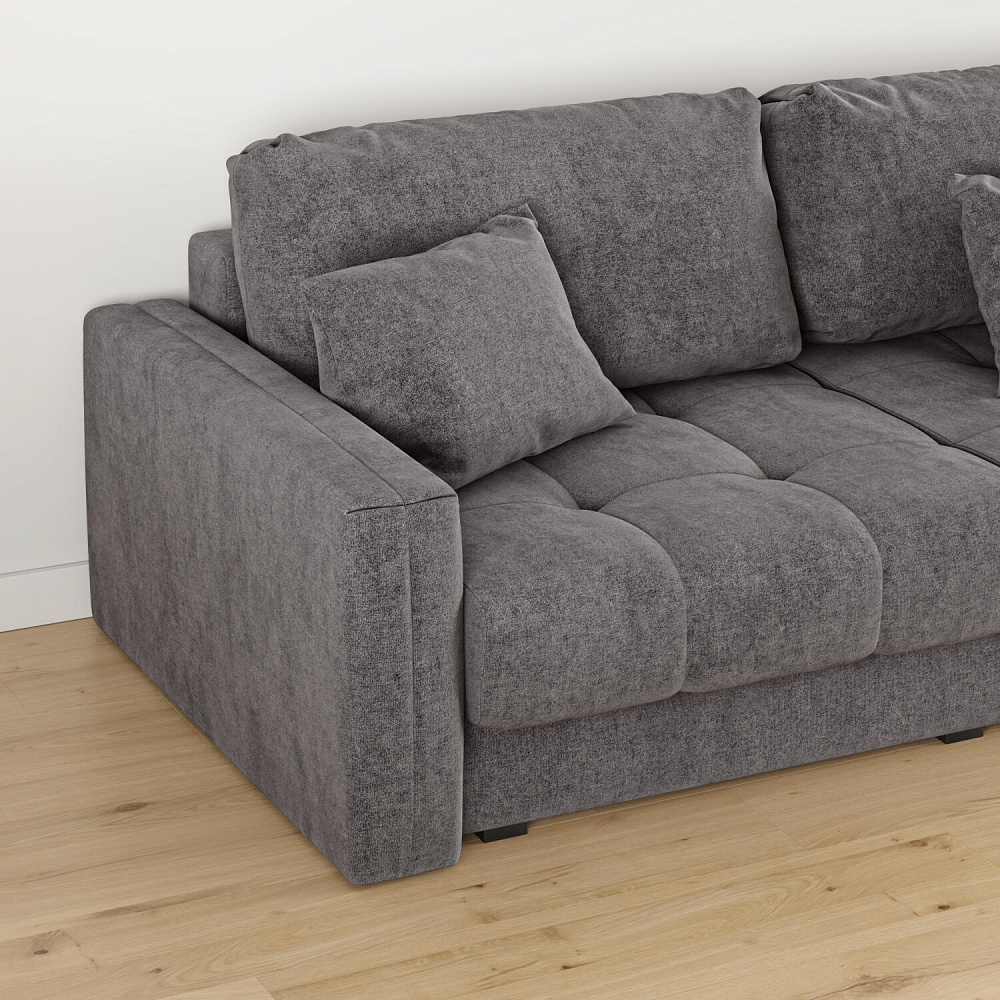 Диван «Дензел» — лучший вариант для ценителей комфорта в сочетании со стильным дизайном. Диван обладает глубокой посадкой, а приспинные и декоративные подушки позволят создать самое удобное место для отдыха. Спинка дивана выполнена в той же обивке, что и основная часть, что даёт возможность использовать диван для зонирования комнаты.
