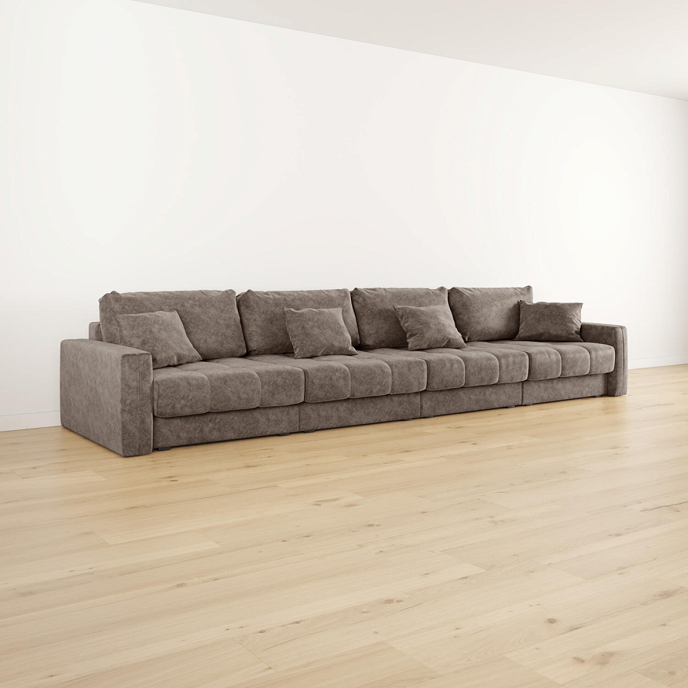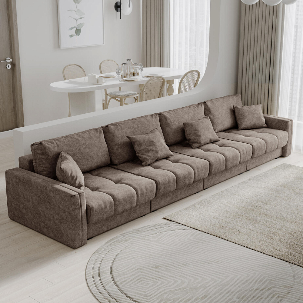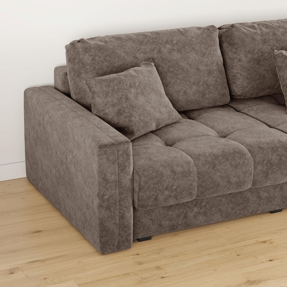 Диван «Дензел» — лучший вариант для ценителей комфорта в сочетании со стильным дизайном. Диван обладает глубокой посадкой, а приспинные и декоративные подушки позволят создать самое удобное место для отдыха. Спинка дивана выполнена в той же обивке, что и основная часть, что даёт возможность использовать диван для зонирования комнаты.