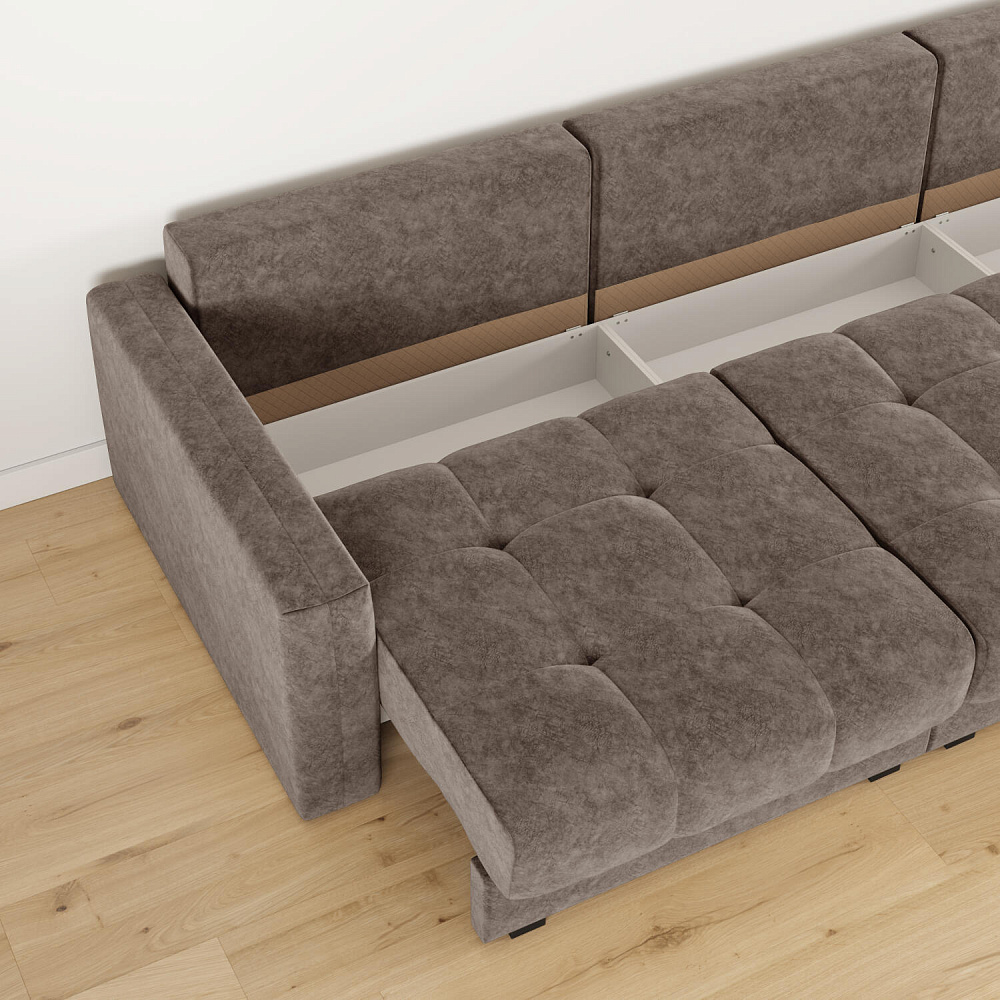- Короб для белья. В диване предусмотрен просторный короб для хранения постельного белья и других вещей.