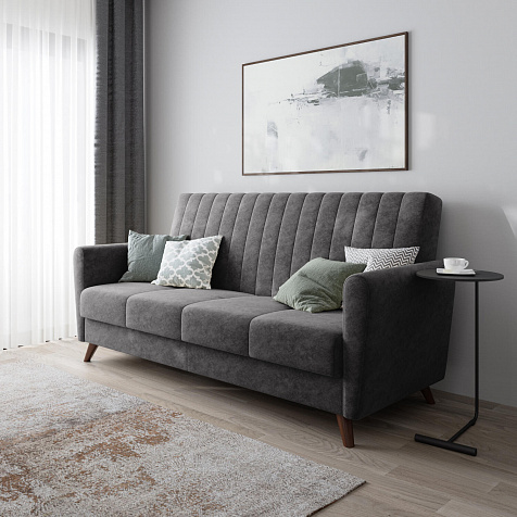 Диван «Эссен» — воплощение скандинавского стиля с выразительными акцентами в виде высоких опор. Эстетичный минимализм в дизайне позволяет использовать модель в различных интерьерных решениях. Декоративная строчка на обивке подчеркивает неброскую элегантность, а высокие ножки добавляют визуальной лёгкости. Прочная и приятная на ощупь ткань обивки подарит истинное эстетическое и тактильное наслаждение.
