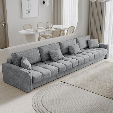 Диван «Дензел» — лучший вариант для ценителей комфорта в сочетании со стильным дизайном. Диван обладает глубокой посадкой, а приспинные и декоративные подушки позволят создать самое удобное место для отдыха. Спинка дивана выполнена в той же обивке, что и основная часть, что даёт возможность использовать диван для зонирования комнаты.