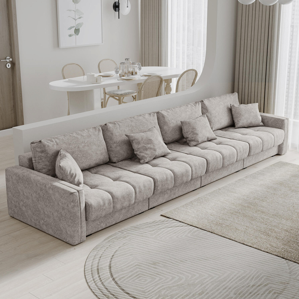 Диван «Дензел» — лучший вариант для ценителей комфорта в сочетании со стильным дизайном. Диван обладает глубокой посадкой, а приспинные и декоративные подушки позволят создать самое удобное место для отдыха. Спинка дивана выполнена в той же обивке, что и основная часть, что даёт возможность использовать диван для зонирования комнаты.