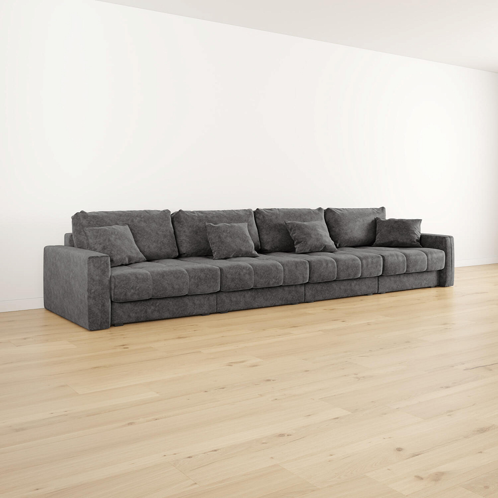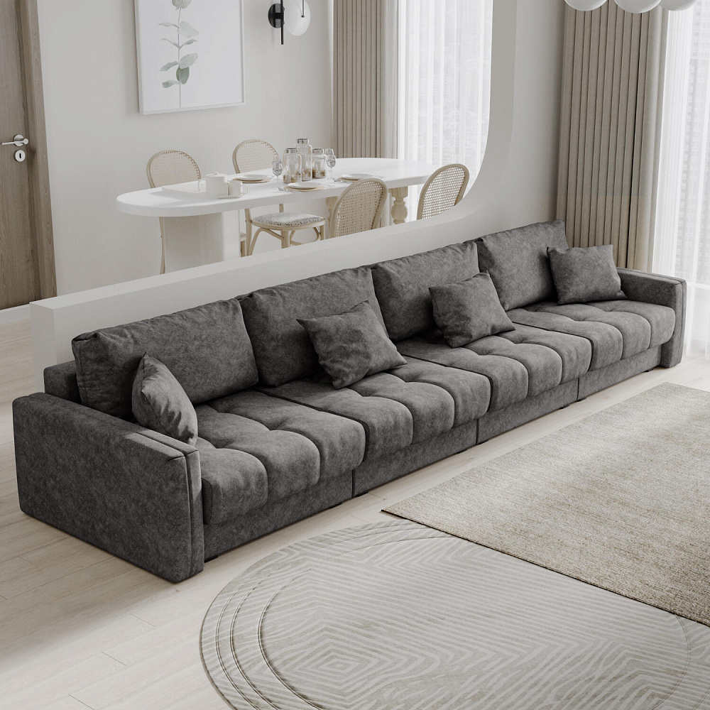 Диван «Дензел» — лучший вариант для ценителей комфорта в сочетании со стильным дизайном. Диван обладает глубокой посадкой, а приспинные и декоративные подушки позволят создать самое удобное место для отдыха. Спинка дивана выполнена в той же обивке, что и основная часть, что даёт возможность использовать диван для зонирования комнаты.