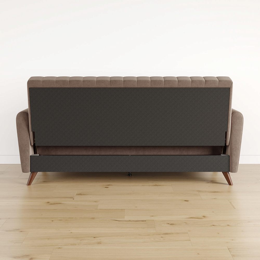 - Короб для белья. В диване предусмотрен просторный короб с двумя отделениями для хранения постельных принадлежностей и других вещей.