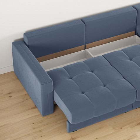 - Размер спального места — 300 х 167 см. Диван легко трансформируется в полноценное двуспальное место для сна и отдыха двух человек.