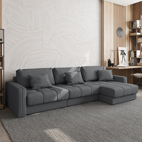 Угловой диван «Дензел» — лучший вариант для ценителей комфорта в сочетании со стильным дизайном. Диван обладает глубокой посадкой, а приспинные и декоративные подушки позволяют создать удобное место для отдыха. Угловая модель займёт своё идеальное место даже в небольшом пространстве. Спинка дивана выполнена в той же обивке, что и основная часть, что даёт возможность использовать диван для зонирования комнаты.