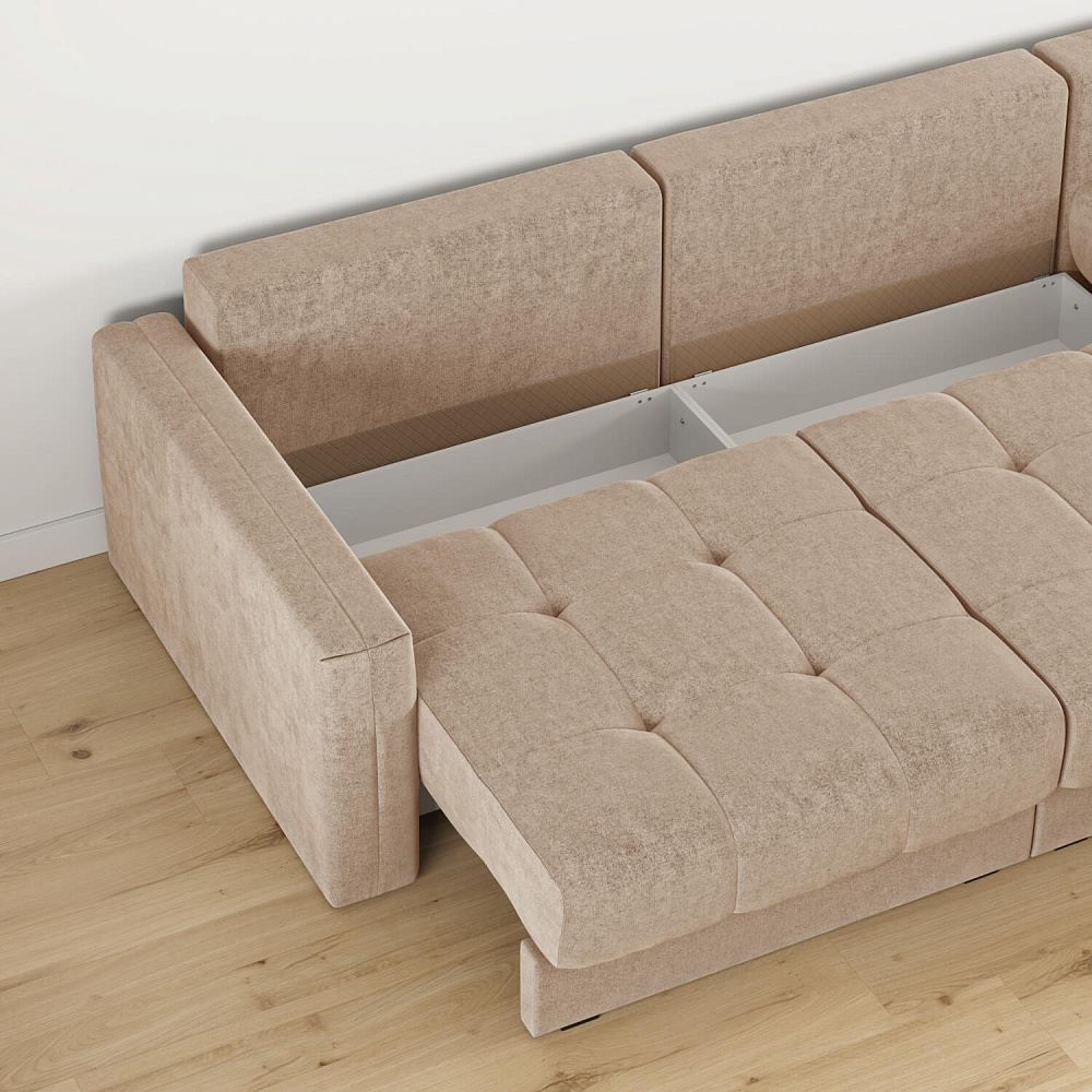 - Два короба для белья. В диване и шезлонге предусмотрены вместительные отделения для хранения постельного белья и других вещей.