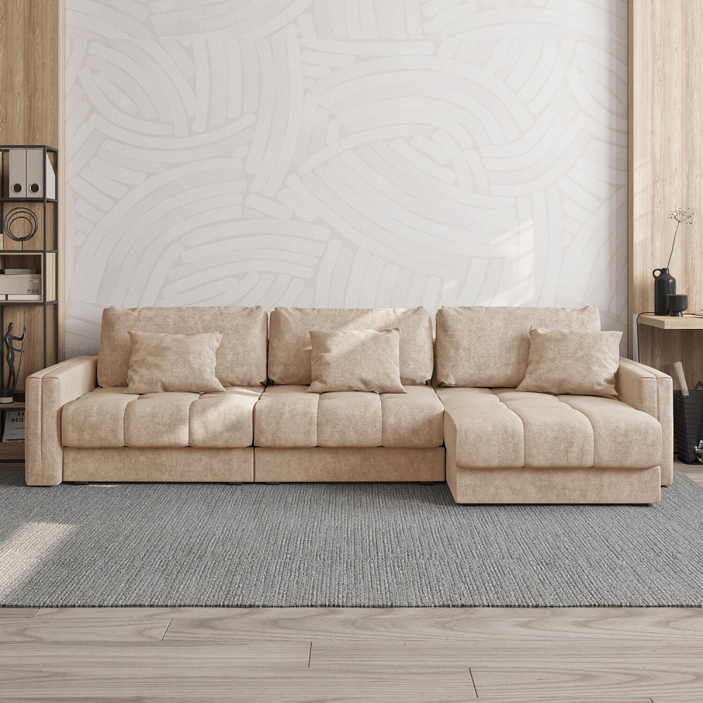 Угловой диван «Дензел» — лучший вариант для ценителей комфорта в сочетании со стильным дизайном. Диван обладает глубокой посадкой, а приспинные и декоративные подушки позволяют создать удобное место для отдыха. Угловая модель займёт своё идеальное место даже в небольшом пространстве. Спинка дивана выполнена в той же обивке, что и основная часть, что даёт возможность использовать диван для зонирования комнаты.
