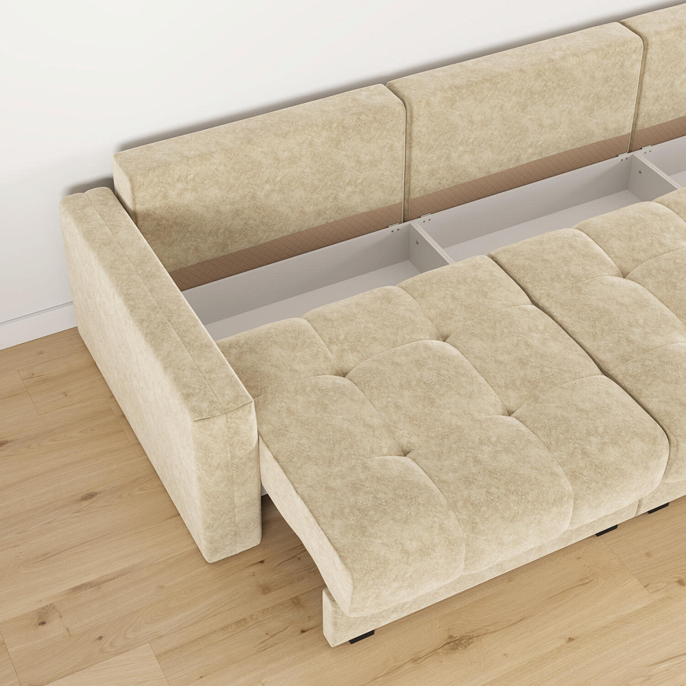 - Два короба для белья. В диване и шезлонге предусмотрены вместительные отделения для хранения постельного белья и других вещей.