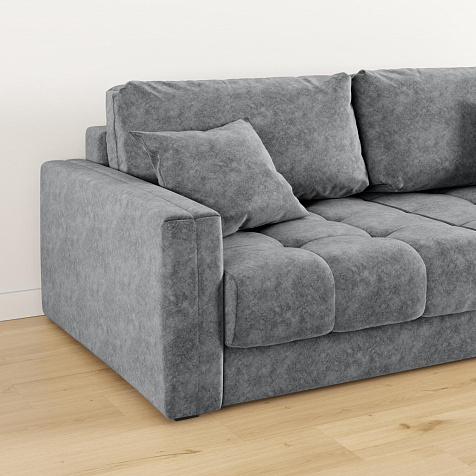 Угловой диван «Дензел» — лучший вариант для ценителей комфорта в сочетании со стильным дизайном. Диван обладает глубокой посадкой, а приспинные и декоративные подушки позволяют создать удобное место для отдыха. Угловая модель займёт своё идеальное место даже в небольшом пространстве. Спинка дивана выполнена в той же обивке, что и основная часть, что даёт возможность использовать диван для зонирования комнаты.