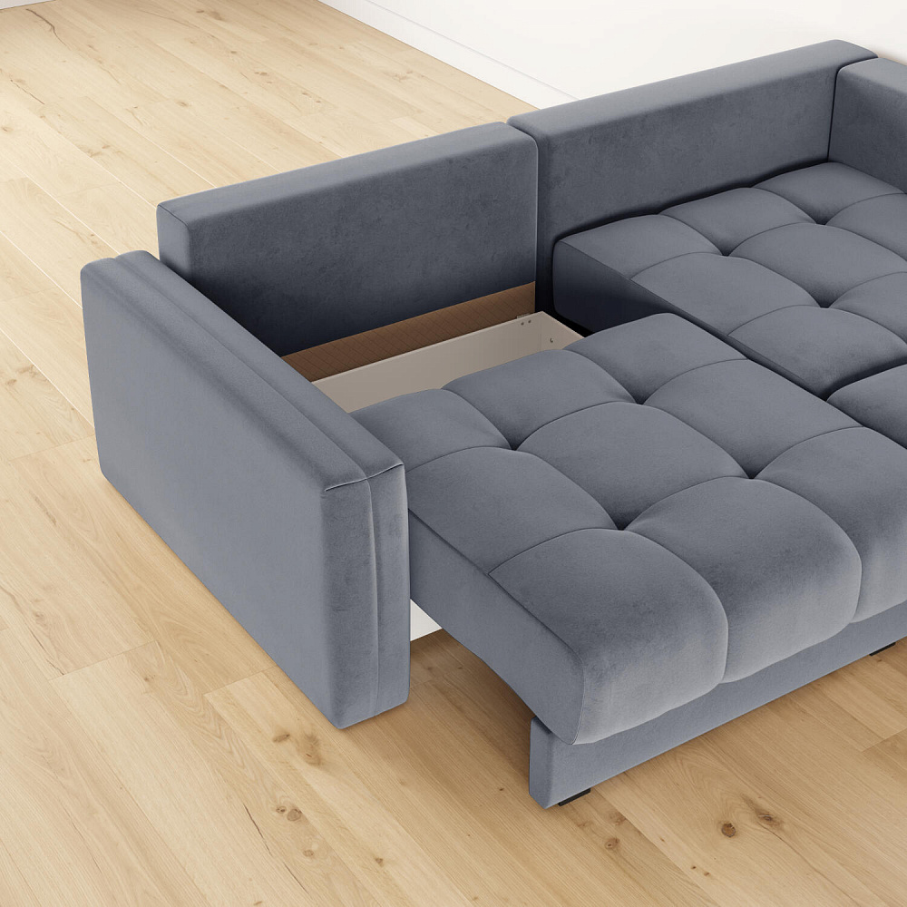 - Размер спального места — 300 х 160 см. Диван легко трансформируется в полноценное двуспальное место.