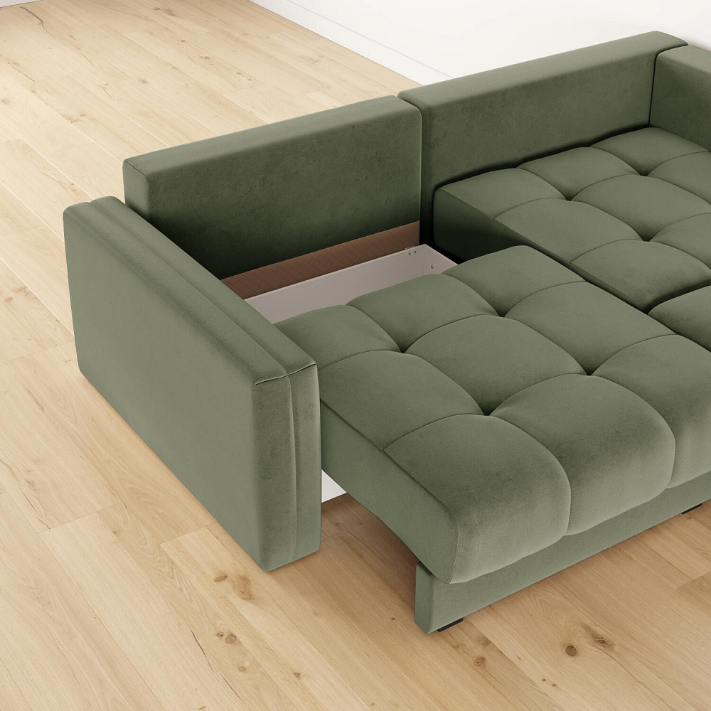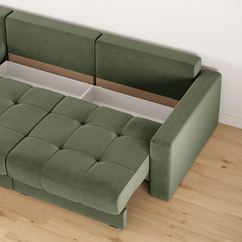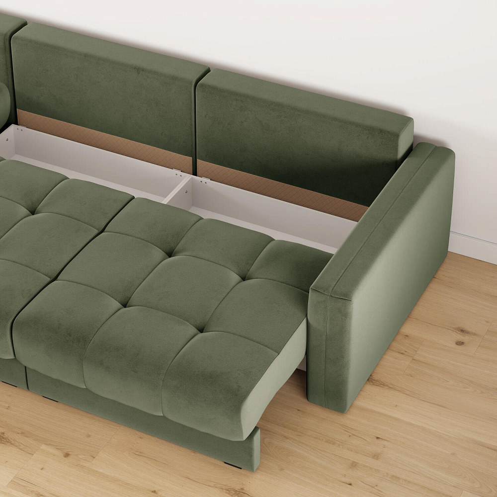 - Два короба для белья. В диване и шезлонге предусмотрены вместительные отделения для хранения постельного белья и других вещей.