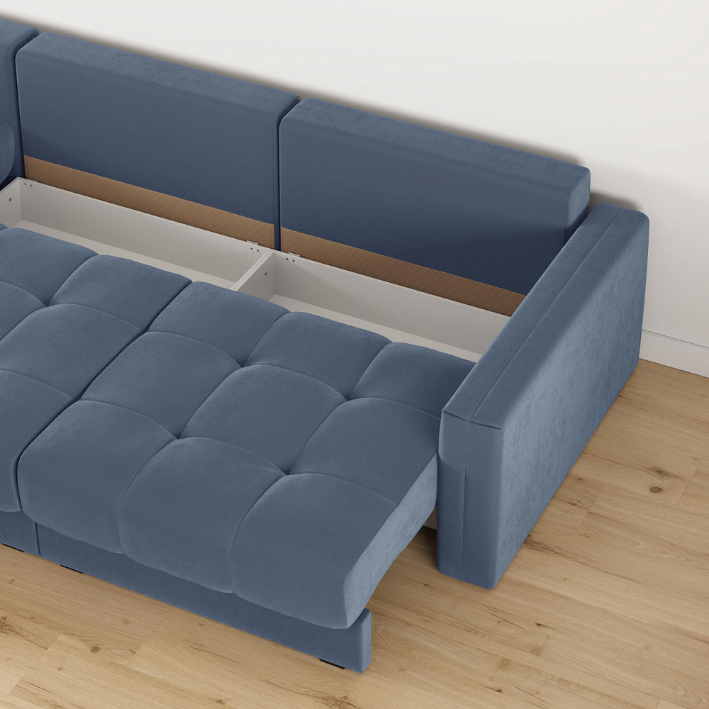 - Два короба для белья. В диване и шезлонге предусмотрены вместительные отделения для хранения постельного белья и других вещей.